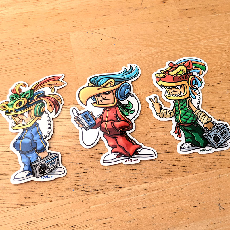 Rock your block with this epic set of THREE stickers featuring: - EAGLE WARRIOR BBOY - SERPENT WARRIOR BBOY - JAGUAR WARRIOR BBOY